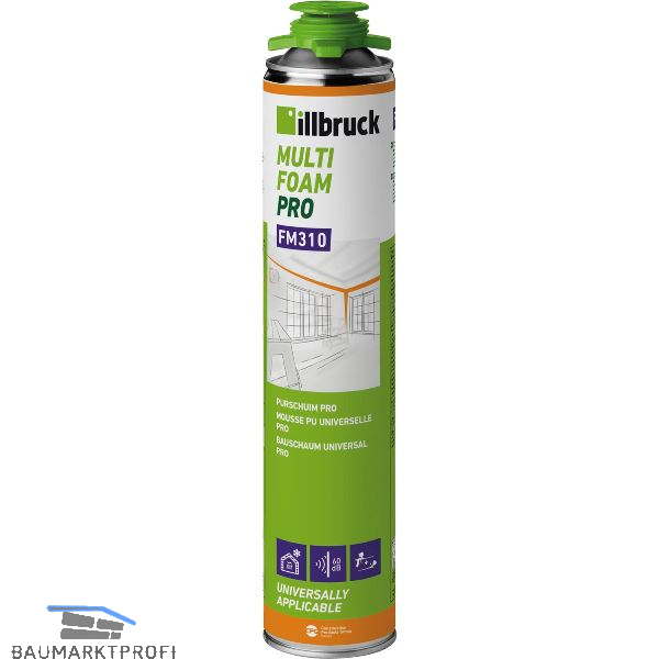 Anwendungsgebiete:illbruck FM310 / FM315 1K PU-Schaum Basic All Season ist für die Verfüllung der Anschlussfugen von Fenster- und Türrahmen geeignet, sowie zur Dämmung und Isolierung.