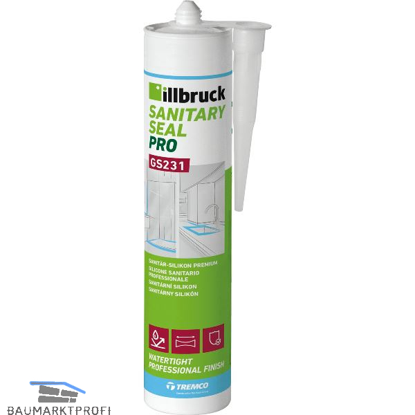 illbruck GS231 Sanitär-Silikon ist nicht überstreichbar und eignet sich auch nicht für den Aquarienbau. Nicht unmittelbar mit Lebensmittel sowie mit pharmazeutischen und medizinischen Produkten in Berührung bringen. Nicht geeignet für Naturstein.
