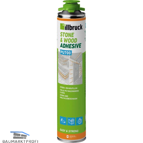 Hochleistungsklebstoff auf Basis von modifiziertem Polyurethan für Holzverklebungen und speziell für die Verklebung von verschiedenen Mauersteintypen mit planen Klebeflächen hergestellt. PU700 ist auch für untergeordnete Wandbauten von geringer Höhe ohne statische Relevanz geeignet z.B. Trockenbauten und kleinere Abtrennungen. PU700 ist langanhaltend gegen Wasser, Seewasser, Kalziumlösung, verdünnte Säuren und Laugen beständig.
