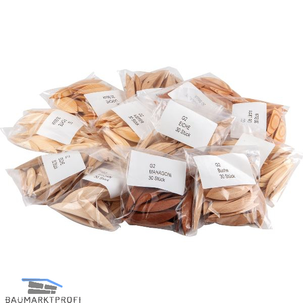 12-teilig zu je 30 Stück Flicken in den Holzarten: