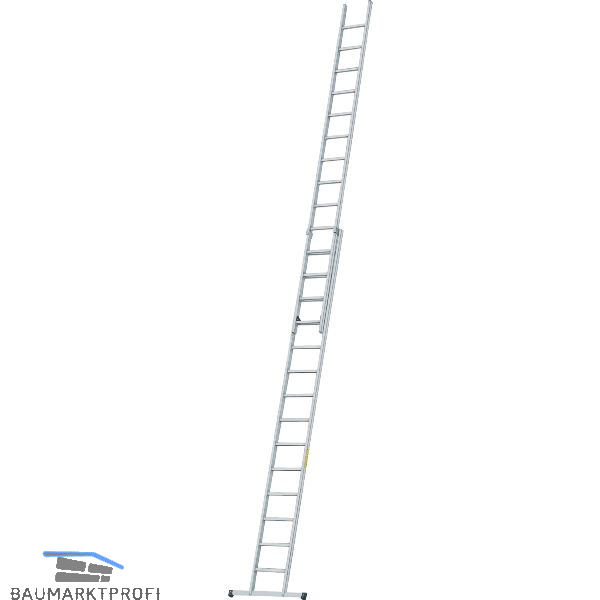 Alu-Schiebeleiter (2-teilig), mit Spezial-Stahlhaken, kunststoffummantelt, mit Aushebesicherung. Aluminium-Führungsklammern in extra starker Ausführung, rutschhemmende Kunststoffschuhe am oberen und unteren Leiterende.Tragkraft 150 kg.