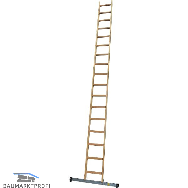 Aus handselektierten Nadelholzholmen, Sprossen aus Hartholz, verleimte Doppelkeilverbindungen zwischen Holmen und Sprossen, imprägniert, Leiterbreite außen ca. 390 mm. Tragkraft 150 kg.