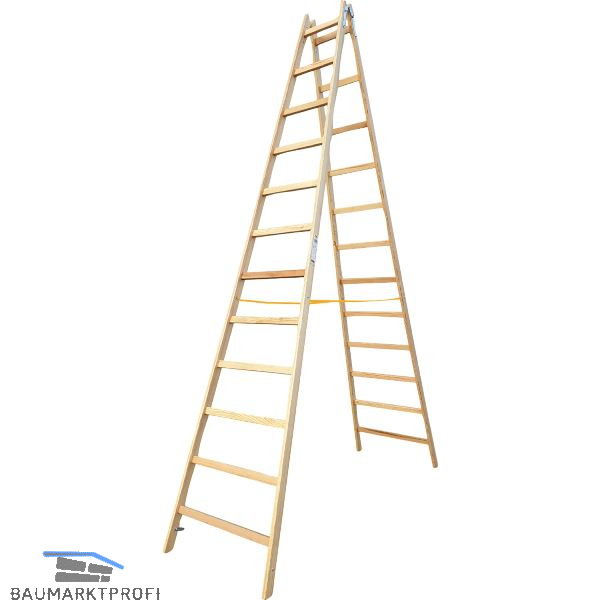 JUST Holz Stehleiter Sprossen=12 Länge=3,76 m mit Gurt