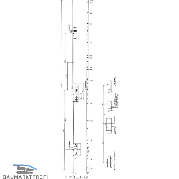 Verriegelung: 2 Bolzenverriegelungen und 1 Schlossriegel