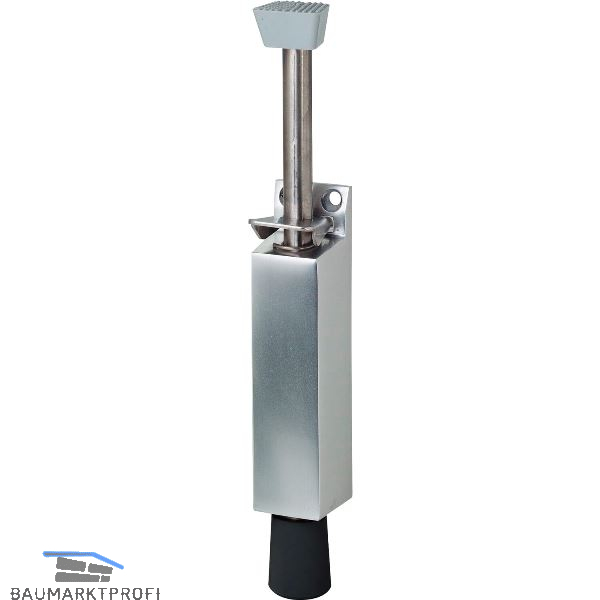 Die Tür kann in jedem Öffnungswinkel festgestellt werden. Dazu wird der Tretbolzen so weit heruntergedrückt bis der Stopfen sich auf dem Boden festgepresst hat. Zur Freigabe der Tür genügt ein leichter Druck auf die Sperrplatte. Eine serienmäßig montierte Konterfeder erhöht den Anpressdruck auf dem Boden. Der Abstand von Unterkante der Tür bis Bolzen soll 5 - 10 mm betragen.