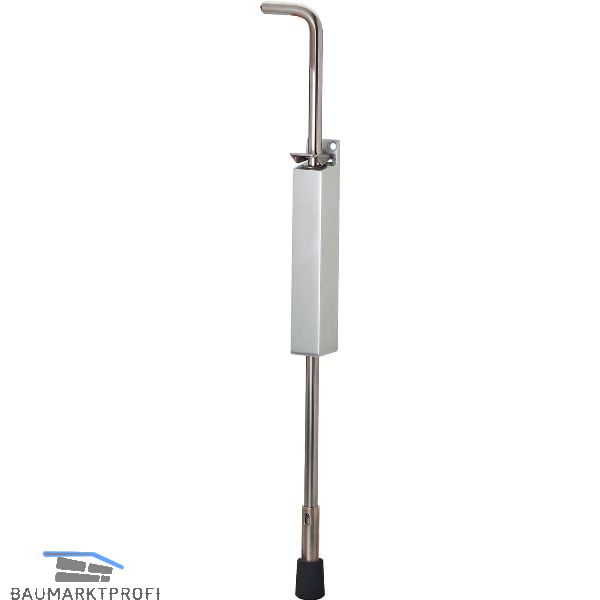 Die Tür kann in jedem Öffnungswinkel festgestellt werden. Dazu wird die Feststellstange so weit heruntergedrückt, bis der Stopfen sich auf dem Boden festgepresst hat. Zur Freigabe der Tür genügt ein leichter Druck auf die Sperrplatte bei gleichzeitigem Hochziehen der Feststellstange.