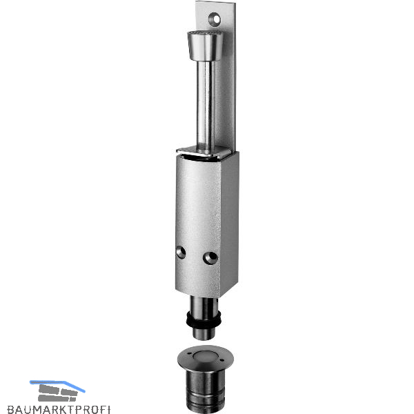 Die Tür wird bis zu der in den Boden eingelassenen Büchse geöffnet. Durch Betätigung des Tretbolzen wird die Tür arretiert. Zur Freigabe genügt ein leichter Druck auf die Sperrplatte des Feststellers. Der Abstand von Unterkante der Tür bis Stopfen soll 5 - 10 mm betragen.