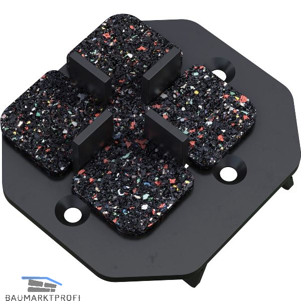 Der M-Fix Smart sorgt bei der Verlegung von Platten auf Isostep-Schienen für ein gleichmäßiges Fugen- und Verlegebild (3 mm). Mit dem dazugehörigen Gummipad hat die Platte eine rutschfeste Auflage sowie eine Dämpfung für ein angenehmes Laufgefühl. Neben seiner Funktion als Plattenauflage dient der M-Fix Smart zudem auch als Verbindungselement der Innen-UK mit der Rahmen-UK.
