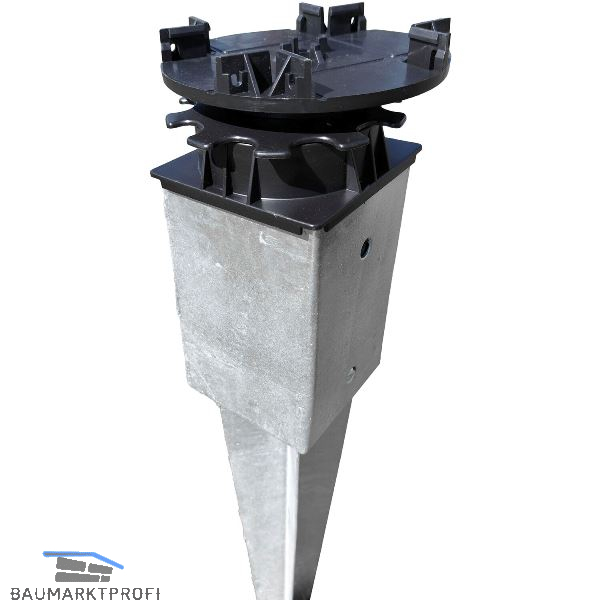 Terrassenlager-Flex wurden speziell für den Einsatz in Bodeneinschlaghülsen (91 x 91 mm) entwickelt und sind damit in unebenem Gelände zum Ausgleich von Gefälle bestens geeignet!