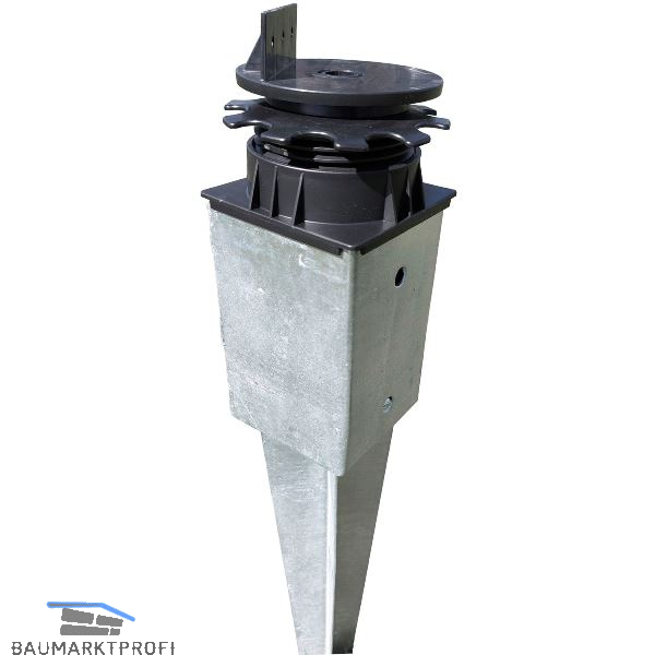 Terrassenlager-Flex wurden speziell für den Einsatz in Bodeneinschlaghülsen (91 x 91 mm) entwickelt und sind damit in unebenem Gelände zum Ausgleich von Gefälle bestens geeignet!
