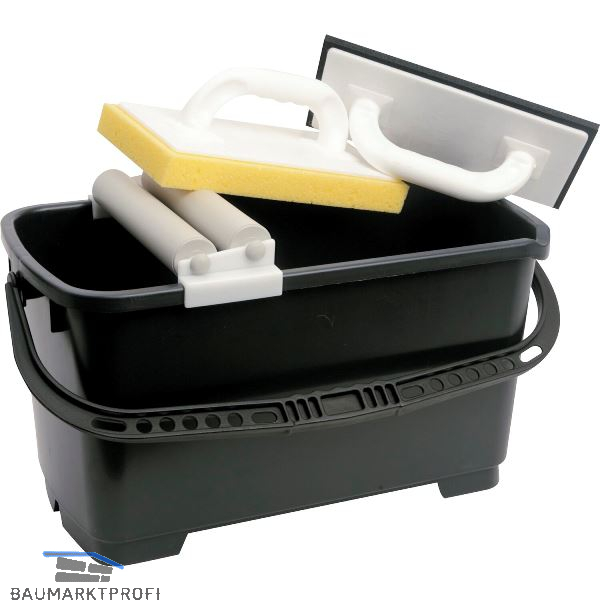 Lieferung inkl.1 Wascheimer 22 Liter mit Rollenaufsatz1 Fliesenwaschbrett HYDRO 280x140 mm1 Reibebrett Moosgummi schwarz 280x140 mm