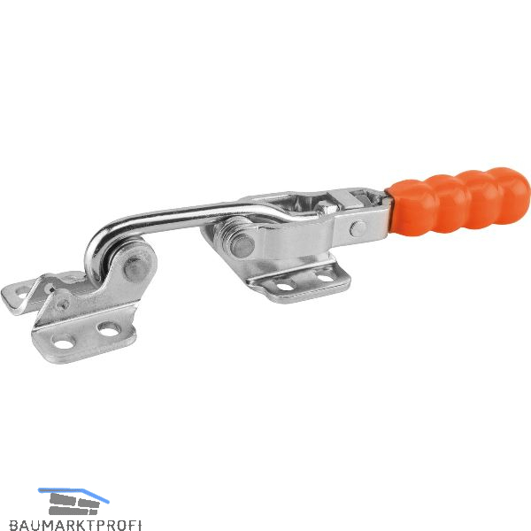 Verschlussspanner horizontal mit Gegenhalter. Verzinkt und chromatisiert. Aus Stahl mit ölbeständigem Kunststoffgriff. Die Hakenspanner sind im Besonderen für das schnelle Verschließen und Befestigen von Deckeln und Klappen geeignet. Der Verstellweg kann am Verschlusshaken für jede Ausführung individuell eingestellt werden.