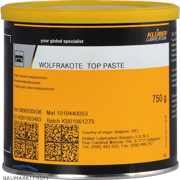 Wolfrakote Top Paste ist eine graue Hochtemperaturpaste auf Basis hochwertiger Kohlenwasserstofföle mit einer temperaturbeständigen Festschmierstoffkombination.