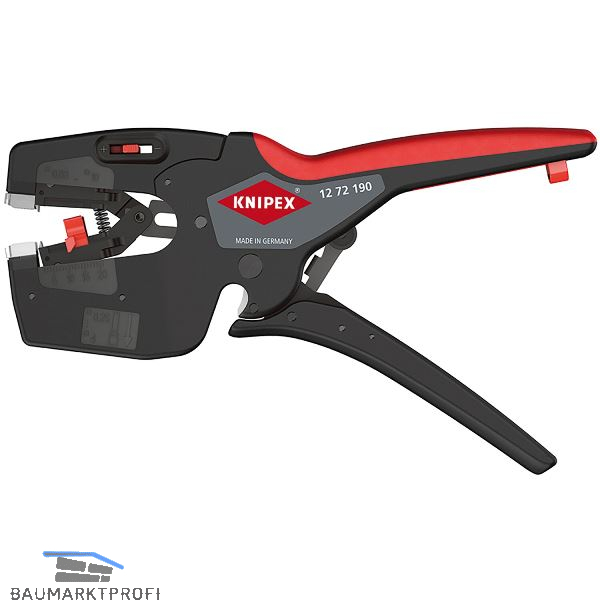 Elektriker-Multiwerkzeug. Abisolierzange für 10 mm² mit Crimpfunktion bis 4 mm² und 2 x 2,5 mm² und integrierter Kabelschere bis 10 mm². Automatische Größenanpassung mit Längenanschlag für exaktes, wiederholgenaues Arbeiten, mit Feinjustierung. Gleichmäßig flächige Vierkantpressung, flexibel und schnell für Aderendhülsen, die Zwangssperre garantiert den erforderlichen Anpressdruck. Sicher schneiden durch rutschhemmende Griffe. Ergonomischer Zweikomponenten-Griff. Schnelle, präzise Vierkantpressung einzelner AEH nach DIN 46228. Teil 1 + 4, selbsteinstellend zwischen 0,25 – 4 mm² / 2 x 2,5 mm² – erlaubt schnellen Wechsel zwischen diversen Größen. Langlebig und robust: hochwertiges Gehäuse aus glasfaserverstärktem Kunststoff.