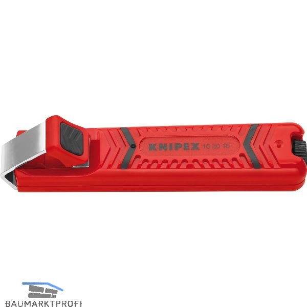 Zum Abmanteln aller gängigen Rundkabel. Selbstspannender Festhaltebügel. Mit Schnitttiefeneinstellung per Einstellschraube. Selbstdrehende Schleppklinge für Umfangs- und Längsschnitt. Reserveklinge im Gehäuse. Griffsicherheit durch Weichkomponenten-Einlage als Abrutschschutz an Griff und Festhaltebügel.