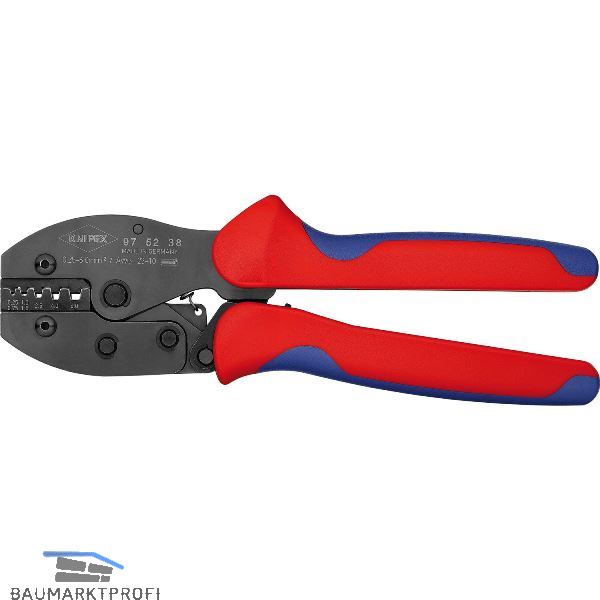 Gleichbleibend hohe Crimpqualität durch Präzisionseinsätze und Zwangssperre (entriegelbar). Crimpdruck ist werkseitig präzise eingestellt (kalibriert), nachstellbar. Kraftverstärkung durch Kniehebel für ermüdungsarmes Arbeiten. Gutes Handling durch günstige Griffstellung, geringes Gewicht, kurze Bauform und ergonomisch geformte Griffe. Mit Öffnungsfeder.