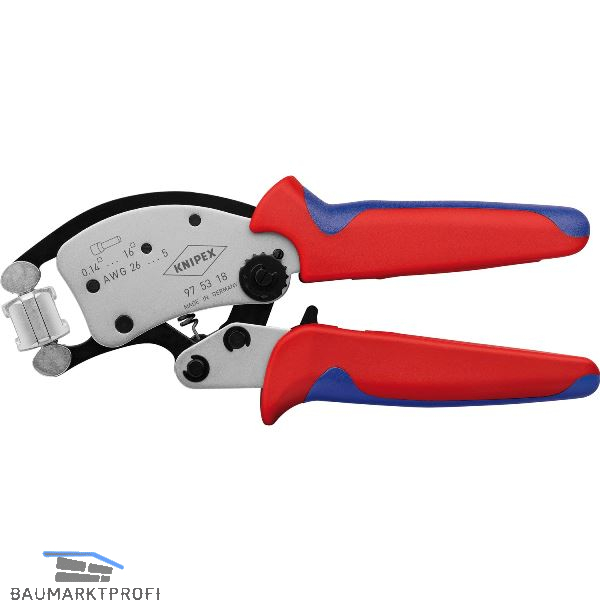 Zum Verpressen von Aderendhülsen nach DIN 46228 Teil 1 + 4. Quadratisches Crimpprofil. Großer Kapazitätsbereich von 0,14 bis 16 mm². 360° drehbarer Crimpeinsatz, mit 8 fühlbaren Rastpositionen. Selbsteinstellende Anpassung auf die gewünschte Aderendhülsengröße: keine Crimpfehler durch Verwendung des falschen Crimpeinsatzes oder einer falschen Einstellung. Verpressung von Twin-Aderendhülsen bis 2 x 6 mm² möglich. Schlanker Kopf für optimale Zugänglichkeit. Gleichbleibend hohe Crimpqualität durch Zwangssperre (entriegelbar). Günstige Übersetzungsverhältnisse durch Kniehebel-Mechanik. Crimpdruck ist werkseitig präzise eingestellt (kalibriert), nachstellbar. Hoher Bedienkomfort durch handliche Bauform und geringes Gewicht. Mit Öffnungsfeder.
