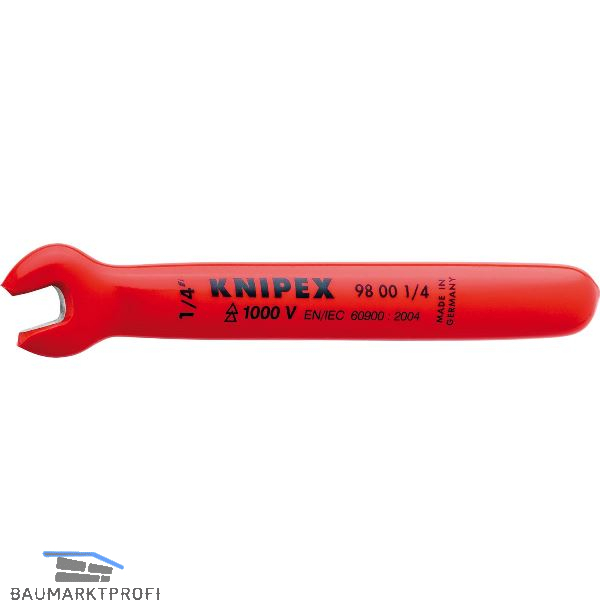KNIPEX Einmaulschlüssel isoliert Zoll, SW 1/4", Maulstellung 15°, L=108 mm