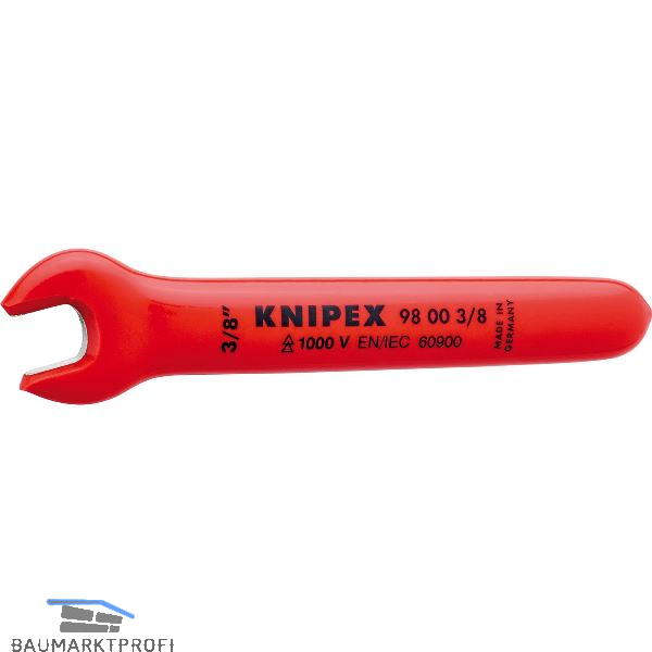 KNIPEX Einmaulschlüssel isoliert Zoll, SW 3/8", Maulstellung 15°, L=108 mm