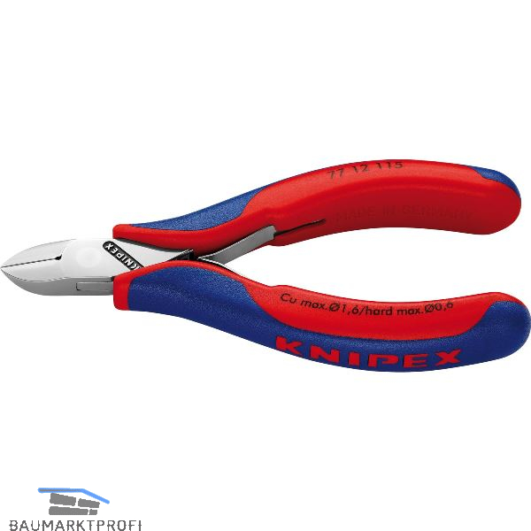 Für feine Schneidarbeiten, z. B. in Elektronik und Feinmechanik. Belastungsoptimierte Formgebung für ein direkteres Arbeitsgefühl. Stabiles, durchgestecktes und spielfreies Gelenk. Reibungsarme Doppelfeder für ein sanftes und gleichmäßiges Öffnen, Schneiden zusätzlich lasergehärtet. Schlanke, zum Zangenkopf hochgezogene Hüllen bieten sichere und komfortable Führung auch zwischen Daumen und Zeigefinger.