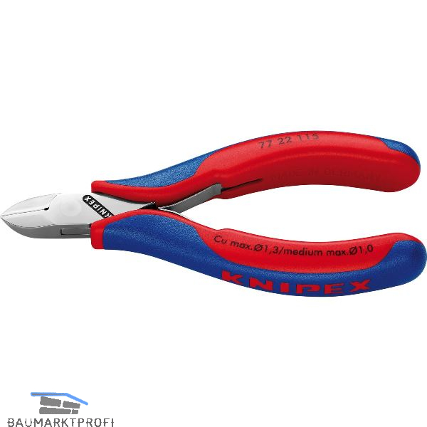 Für feine Schneidarbeiten, z. B. in Elektronik und Feinmechanik. Belastungsoptimierte Formgebung für ein direkteres Arbeitsgefühl. Stabiles, durchgestecktes und spielfreies Gelenk. Reibungsarme Doppelfeder für ein sanftes und gleichmäßiges Öffnen, Schneiden zusätzlich lasergehärtet. Schlanke, zum Zangenkopf hochgezogene Hüllen bieten sichere und komfortable Führung auch zwischen Daumen und Zeigefinger.