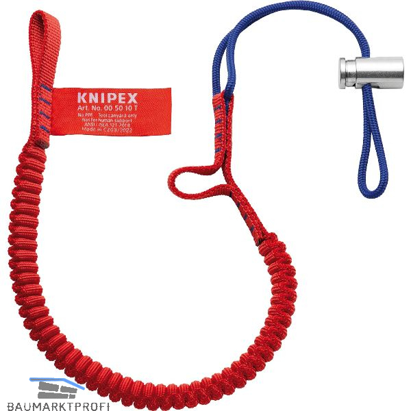 Zum Einsatz im Hochbau, Tiefbau, Gebäudeinstandhaltung; bei Industriekletterern, Dachdeckern, Bergsteigern, im Klettersport, Messebau. Schützt das Werkzeug zuverlässig vor dem Herunterfallen, verhindert den Verlust des Werkzeugs, die Verletzung von Lebewesen sowie die Beschädigung von Gegenständen, großer Arbeitsradius: lange Fangleine für bequemes Arbeiten, vielseitiger Einsatz: Fangleine kann mit der Kordel direkt an Handgelenk, Gürtel, Kletterausrüstung usw. befestigt werden, Verbindung zu KNIPEX Tethered Tools auch ohne Karabiner möglich. Die Fangleine aus gerafftem Gewebeband dehnt sich bei Belastung.