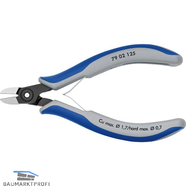 Präzisionszangen für feinste Schneidarbeiten, z. B. in Elektronik und Feinmechanik. Sehr genau geschliffene, scharfe Schneiden für exakte Schnitte an empfindlichen Elektronik-Bauteilen. Schneiden zusätzlich induktiv gehärtet. Schneidenhärte ca. 64 HRC. Ca. 20 % weniger Gewicht als konventionelle Elektronikzangen. Geschraubtes Gelenk mit besonders sorgfältig gefertigten Gelenkflächen für gleichmäßige, reibungsarme Bewegung im gesamten Öffnungsbereich. Leichtgängige Doppelfeder für ein sanftes und gleichmäßiges Öffnen.