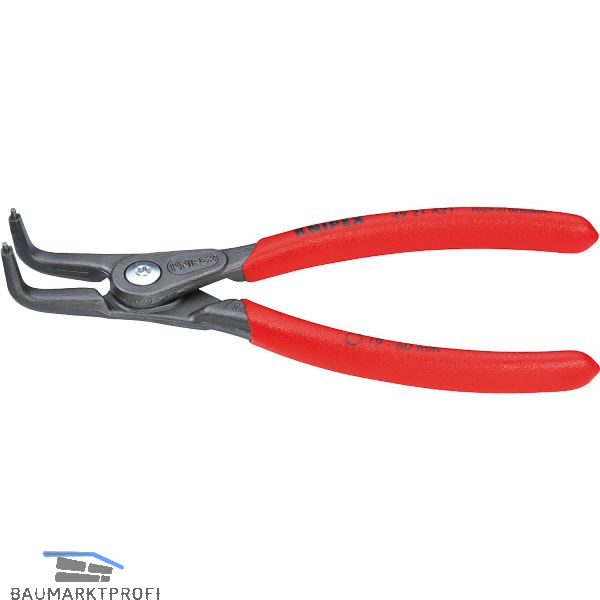 Für Außenringe auf Wellen. Geschmiedete Zange mit eingesetzten Spitzen aus gezogenem Federstahldraht höchster Güte. Hoch belastbar im Dauereinsatz, bis zu 10-fach höhere Standzeit im Vergleich zu herkömmlichen Sicherungsringzangen. Große Auflageflächen an den Spitzen. Spitzen 90º abgewinkelt. Im Gelenk liegende Öffnungsfeder.