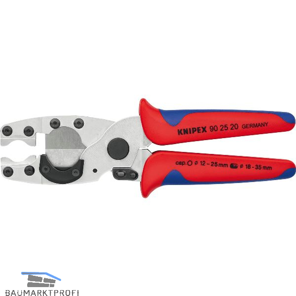 Zum Schneiden von Verbundrohren Ø 12,0 bis 25,0 mm und von flexiblen Schutzrohren Ø 18,0 bis 35,0 mm ohne das innenliegende Rohr zu verletzen. Möglichkeit zur Anbringung eines Kalibrierdorns z. B. für Geberit-Verbundrohre Ø 11,5 und 15,0 mm. Messer aus Spezial-Werkzeugstahl, auswechselbar. Mit Öffnungsfeder.