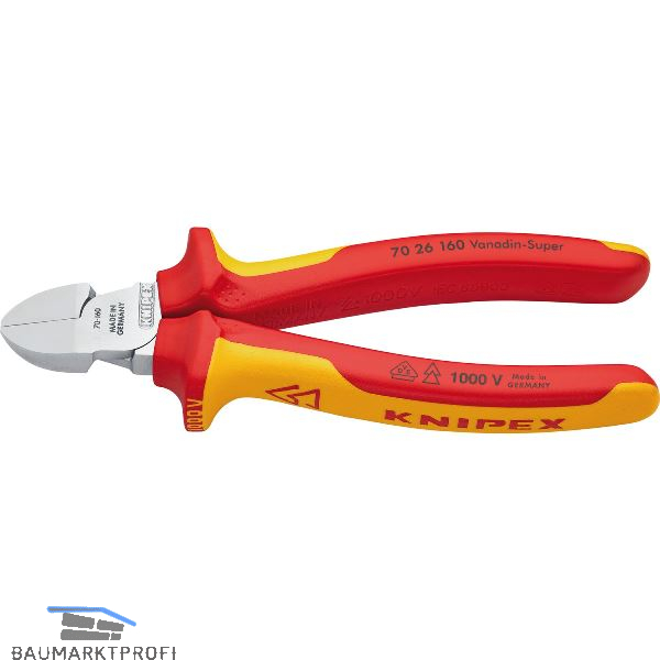 Der unentbehrliche Seitenschneider für vielseitigen Einsatz. Hochwertiges Material und präzise Verarbeitung für eine lange Standzeit. Präzisionsschneiden für weichen und harten Draht. Sauberer Schnitt bei dünnen Cu-Drähten, auch an den Schneidenspitzen. Schneiden zusätzlich induktiv gehärtet, Schneidenhärte ca. 62 HRC. Schlanke Kopfform für den Einsatz in schwer zugänglichen Arbeitsbereichen. Vanadin-Elektrostahl, geschmiedet, mehrstufig ölgehärtet.