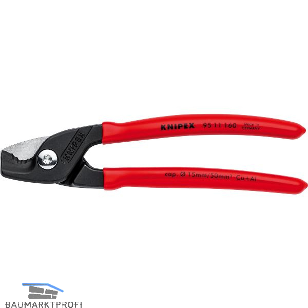 40% weniger Kraftaufwand gegenüber Standard Kabelscheren durch Abstufungen in der Schneide. Schneiden ohne Quetschen. Ergonomische Griffe. Präzises, langlebiges Schneiden durch geschraubtes Gelenk. Induktiv gehärtete Schneiden. Mit Klemmschutz für sicheres Arbeiten. Nicht für Stahldraht und hartgezogene Kupferleiter geeignet.