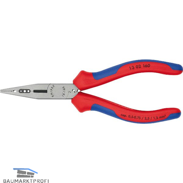 Die ideale Zange bei Verkabelungsarbeiten. Zum Greifen und Biegen von Drähten. Zum Schneiden von mittelhartem und hartem Draht. Präzisionsschneiden zusätzlich induktiv gehärtet, Schneidenhärte ca. 60 HRC. Mit Präzisions-Abisolierlöchern. Zum Crimpen von Aderendhülsen. Vanadin-Elektrostahl, geschmiedet, mehrstufig ölgehärtet.