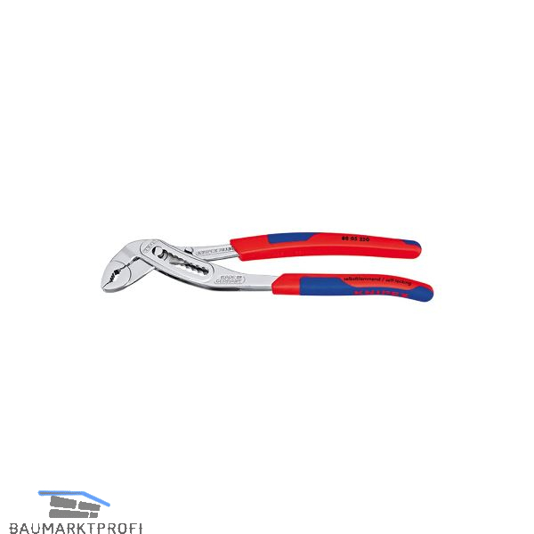 Durchgestecktes Gelenk: hohe Stabilität durch doppelte Führung, selbstklemmend an Rohren und Muttern, kein Abrutschen am Werkstück, kraftsparendes Arbeiten, Klemmschutz verhindert Quetschverletzungen, günstige Hebelwirkung: optimale Kraftübertragung, Greifflächen mit spezialgehärteten Zähnen, Härte der Zähne ca. 61 HRC. Dauerhaft sicheres Greifen durch hohe Verschleißfestigkeit, geschmiedet, ölgehärtet.