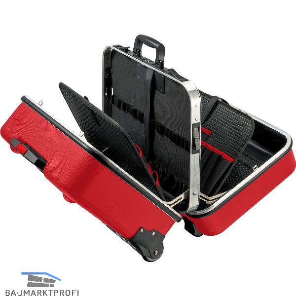 Herausnehmbares Dokumentenfach und herausnehmbare Werkzeugtafeln aus schmutzabweisenden PP-Hohlkammerplatten mit 13 bestückbaren Werkzeugtaschen.