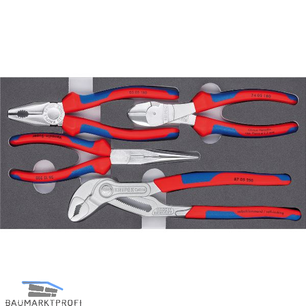 In Schaumstoffeinlage für Werkbank und Werkstattwagen, zur übersichtlichen Aufbewahrung der Werkzeuge. Präzise Mulden für die Aufnahme der Zangen.
