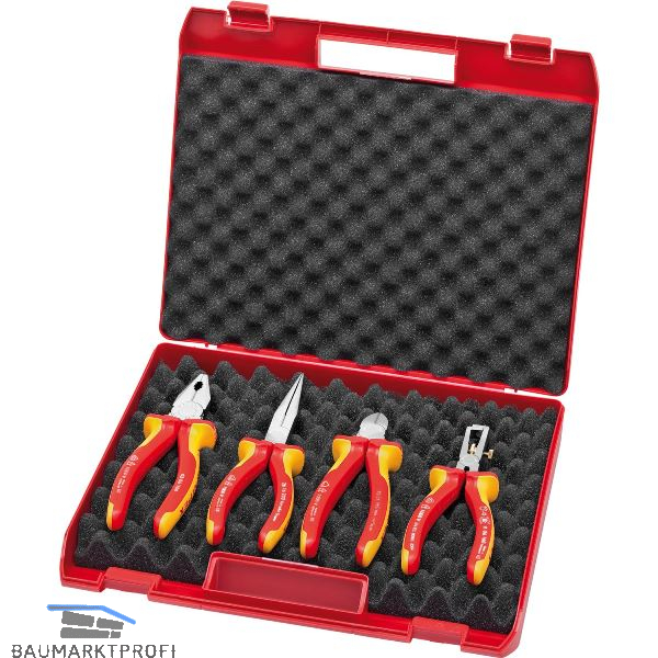Zangen VDE-geprüft nach DIN EN/IEC 60900 1000V, Zangen verchromt, Griffe mit Mehrkomponentenhüllen.
