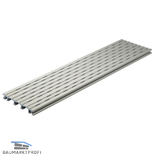 Zudem wird durch das Profil die Hinterlüftung der Terrassenfläche verbessert. Das Belüftungs- und Entwässerungsprofil ist in zwei Stärken verfügbar (20 mm, 26 mm).