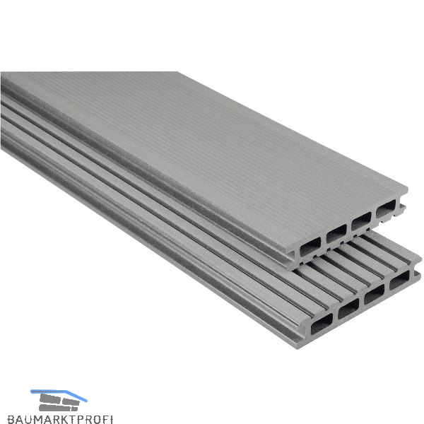 WPC Hohlkammerprofil mit einer sehr stabilen Vollprofil­variante und einer fein geriffelten Oberfläche.