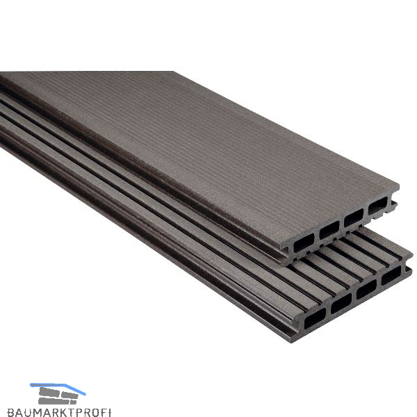 WPC Hohlkammerprofil mit einer sehr stabilen Vollprofil­variante und einer fein geriffelten Oberfläche.