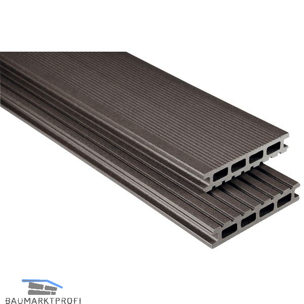 WPC Hohlkammerprofil mit einer sehr stabilen Vollprofil­variante und einer fein geriffelten Oberfläche.