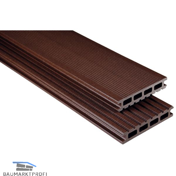 WPC Hohlkammerprofil mit einer sehr stabilen Vollprofilvariante und einer fein geriffelten Oberfläche.