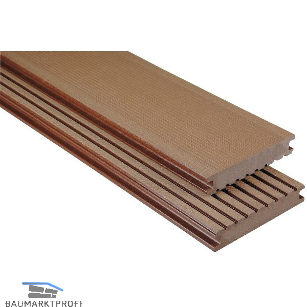 WPC Hohlkammerprofil mit einer sehr stabilen Vollprofilvariante und einer fein geriffelten Oberfläche.