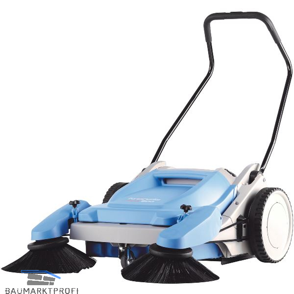Komfortables, schnelles und rückenschonendes Kehren durch den stufenlos verstellbaren Schubbügel. Klappbare Seitenbesen mit stufenloser Höhenverstellung. Große Laufräder mit Naturgummi-Bereifung für optimale Kraftübertragung.