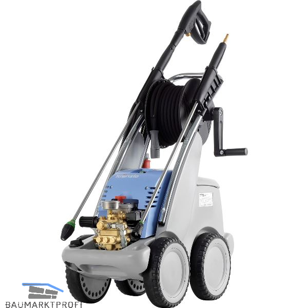 Lieferung inkl. Reinigungsmittelansaugung, Feststellbremse, Schlauchtrommel mit 20 m Stahlgewebe-Hochdruckschlauch DN6, Sicherheitsabschaltpistole M 2000, Schmutzkillerlanze mit Edelstahlrohr, Flachstrahllanze mit Edelstahlrohr, 7,5 m Anschlusskabel mit Kabelaufwicklung.