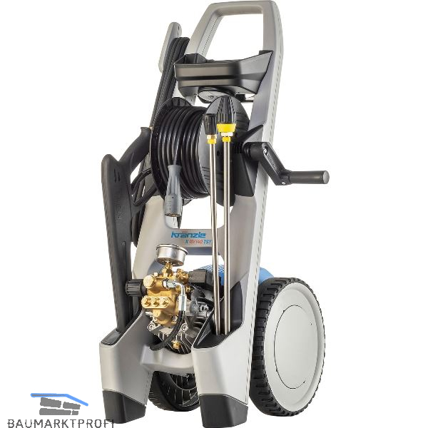 Mit Stufenloser Druckregulierung, Axialpumpe und Totalstop-System. Groß dimensioniertes Edelstahl-Manometer für einfaches Ablesen des Arbeitsdrucks. Praktische Halterungen für Hochdruckpistole und Reinigungslanzen. Mit integrierter Halterung für Kränzle Schaumlanze und praktisches Aufbewahren des Zubehörs. Platzsparende Aufbewahrung des Hochdruckschlauchs mit Twist-Stop-Verdrehschutz. Robustes Fahrgestell für leichten Transport und hohe Standsicherheit. Mit Schnellwechsel-Stecksystem D12.