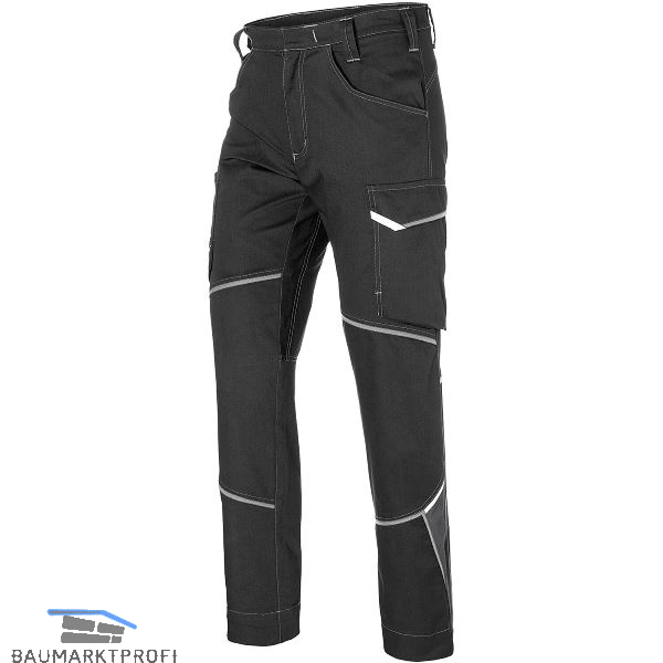 Kontrast- Elemente: Tape-Optik an Patten, Knienähten und seitlich am unteren Hosenteil, Colour Blocking an Seiteneinsätzen am unteren Hosenteil, breite Gürtelschlaufe am Bund hinten, Reflex- Elemente: in Kniekehle, an Schenkel- und Gesäßtaschenpatte, oberhalb Kontrast, Ergonomische Linienführung für mehr Bewegungsfreiheit, 2 Seitentaschen mit großem Eingriff, Rechts: Multifunktionstasche mit loser Meterstabtasche, Smartphonetasche und zusätzlichen Stifttaschen, Gesäßtasche mit Patte und verdecktem Druckknopf, Elastischer Bundeinsatz, Schlitz mit Reißverschluss, Bund mit verdecktem Knopf, Kratzfreie Verarbeitung, Innenliegende Saumverlängerung bis zu 5 cm, Belastungspunkte mit Riegeln gesichert, Links: Lose Schenkeltasche mit Patte und verdecktem Druckknopf, Smartphonetasche in Schenkeltasche.