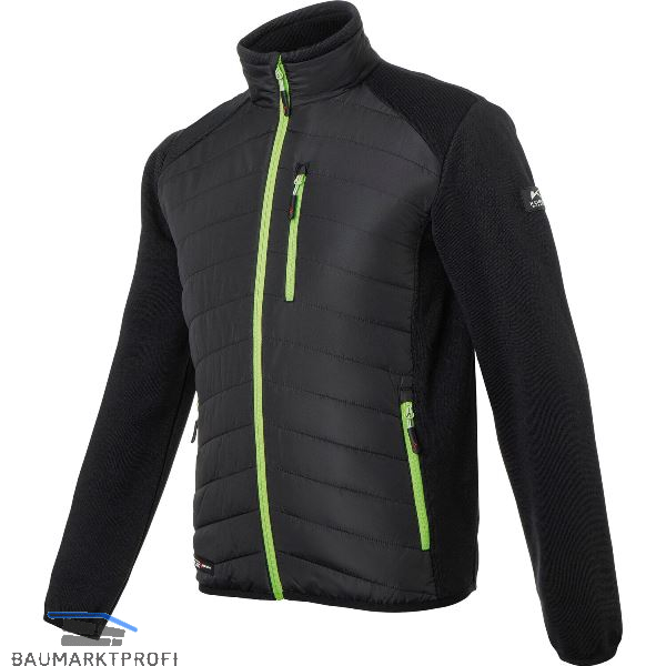 Mix aus wasserabweisendem Steppmaterial mit Wattierung im Körperbereich und Strickfleece an der Ärmelpartie.