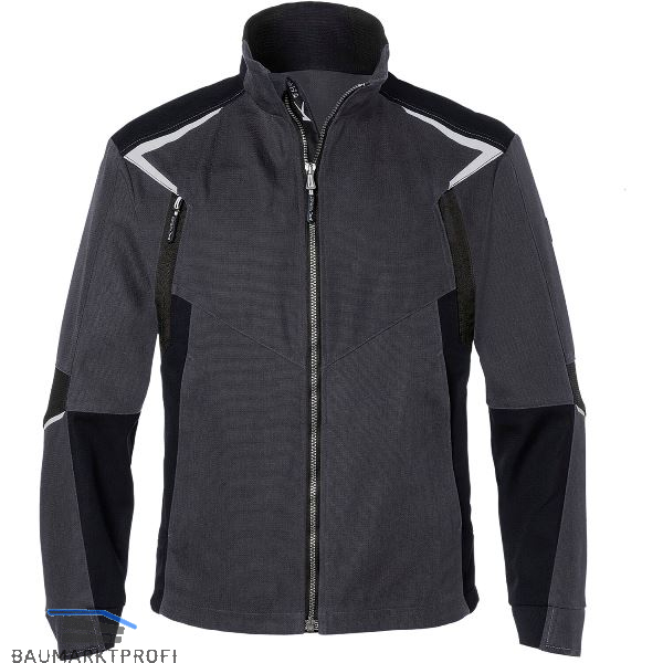 Ergonomische Linienführung für mehr Bewegungsfreiheit. 2 abgedeckte Seitentaschen mit Reißverschluss. 2 diagonale Brusttaschen mit Reißverschluss. Rechts: Smartphone-Innentasche mit Klette. Sichtbarer Frontreißverschluss mit kombinierter Kinn- und Windschutzblende. Alle Reißverschlusstaschen mit Zippergarage und nach innen gedrehter Spirale gegen Schutz und Verkratzen. Steh-/Umlegekragen mit bequemem Stretcheinsatz im Nacken für ergonomisches Arbeiten in Zwangshaltung. Ärmelbündchen und Jackensaum mit Stretcheinsatz. Ergonomisch geschnittene Ärmel mit zusätzlichen Strechzonen an Ellenbogen und Schultern für optimale Bewegungsfreiheit. Verlängerter Rücken. Innovative Gewebebindung für extreme Robustheit und besonder Optik. Ergonomisch geformte, griffige Zipper. Belastungspunkte mit Riegeln gesichert.
