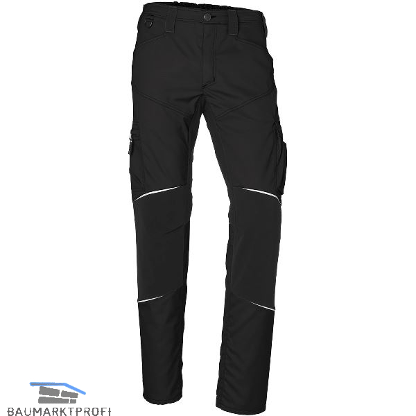 Ergonomische Linienführung für mehr Bewegungsfreiheit, 2 Seitentaschen, 2 Gesäßtaschen mit Reißverschluss, Rechts: D-Ring in Bundnaht, Rechts: Schenkeltasche mit Reißverschluss, integrierte Smartphonetasche und zusätzliche Meterstabtasche, Links: Schenkeltasche mit Patte und Druckknopf, aufgesetzte Stifttaschen, integrierte Smartphonetasche und zusätzliche Mehrzwecktasche, Ergonomisch geformte, griffige Zipper, Stretcheinsätze im Schritt-, Knie- und Gesäßbereich, Elastischer Bundeinsatz, Gürtelschlaufen aus stabilem Kofferband, Schlitz mit Reißverschluss, Vorgeformtes Knie mit Bewegungszone, Belastungspunkte mit Riegeln gesichert