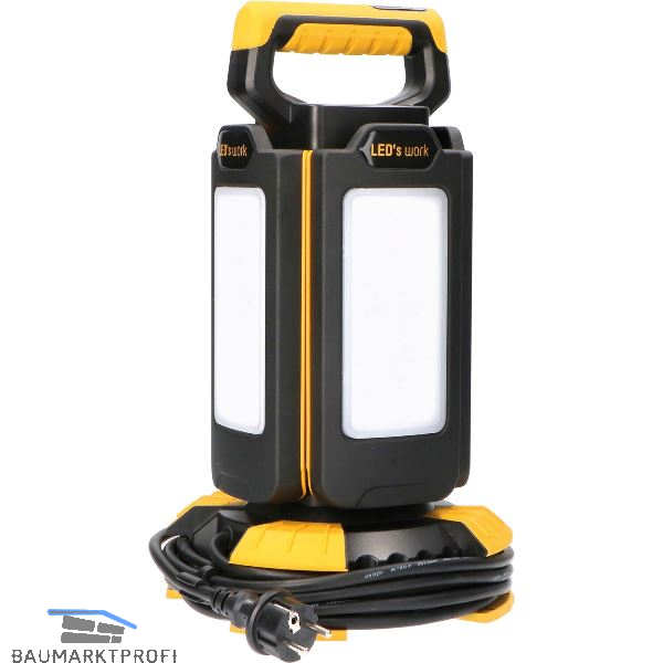 Die 360° Baustellentaugliche Arbeitsleuchte ist das ultimative Werkzeug für jeden Profi. Mit ihren ausklappbaren Elementen können Sie den Fußboden oder den gesamten Arbeitsbereich rundherum beleuchten, um eine perfekte Ausleuchtung zu gewährleisten. Die Leuchte ist zweistufig dimmbar auf 50% & 25% oder stufenlos per Tuya Smartlife App, um genau das richtige Beleuchtungsniveau für Ihre Arbeit zu finden. Die Universal Stativaufnahme macht die Montage auf jedem Stativ kinderleicht und ermöglicht die perfekte Ausrichtung der Leuchte auf die Arbeitsfläche. Die Zuleitung besteht aus einem Öl-und säurebständigem Kabel, das selbst den härtesten Bedingungen auf der Baustelle standhält. So können Sie sicher sein, dass Ihre Leuchte immer sicher und funktionsfähig bleibt.